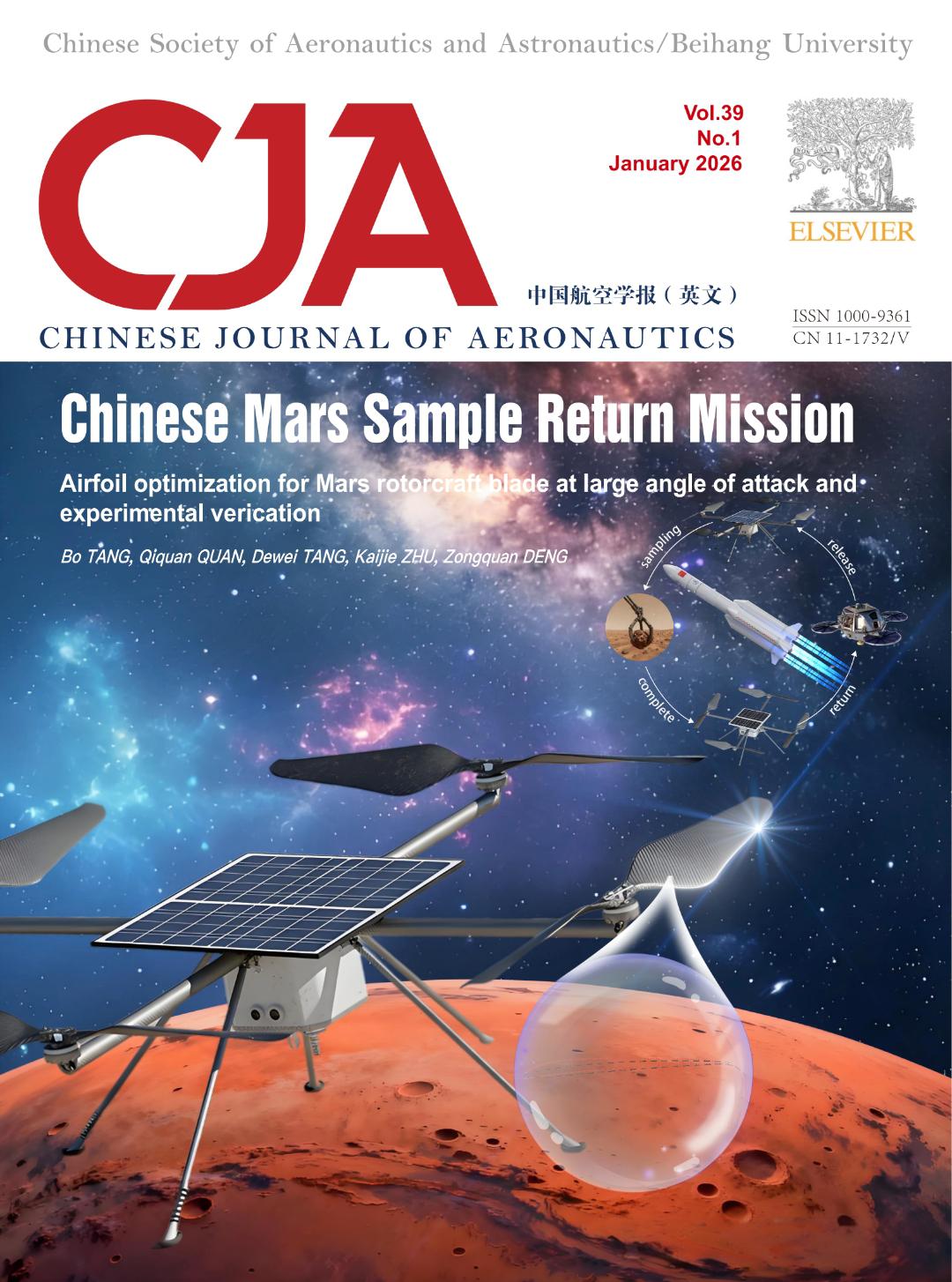 事件:AMT研究室发表的《Airfoil optimization for Mars rotorcraft blade at large angle of attack and experimental verification》论文被《Chinese Journal of Aeronautics》期刊评选为2026年第1期的封面论文。doi